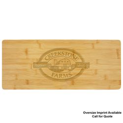 This beautiful bamboo charcuterie/cutting board is a perfect size for serving your guests a variety of goodies! The cutout handles at the bottom of the board leave a solid, no-hole surface on top. Personalized this charcuterie/cutting board makes a perfect gift for any occasion. Laser engraved leaving a natural wood imprint color. Individually packaged. Oversize imprints available.