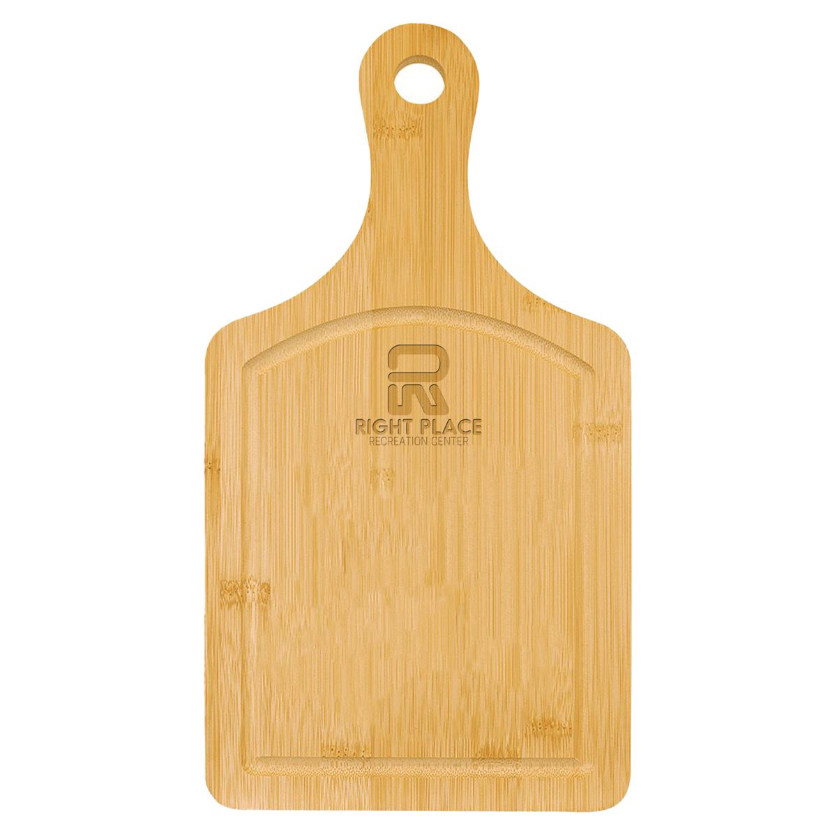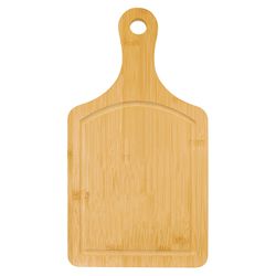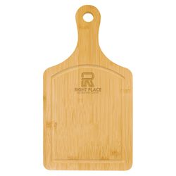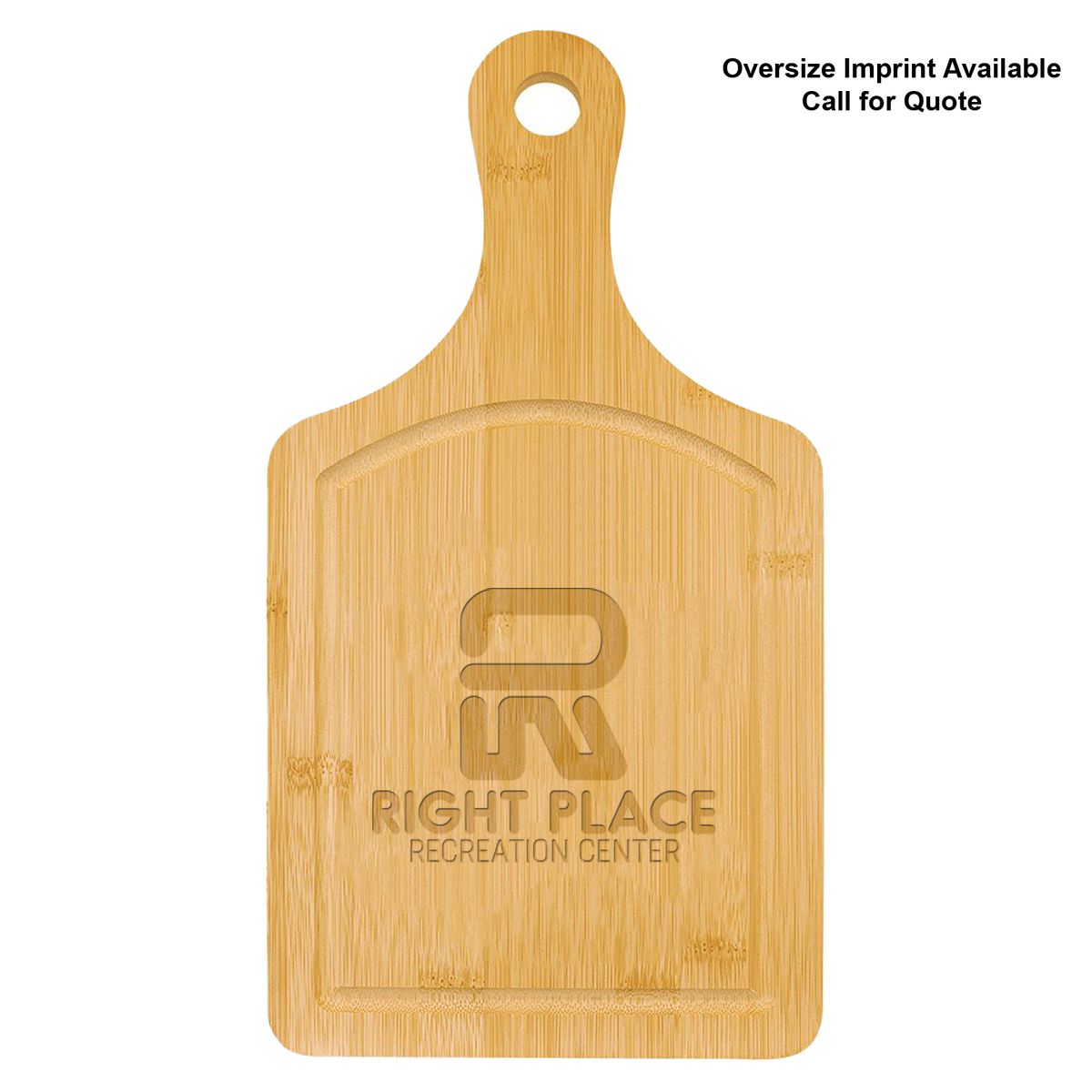 These stunning boards feature a juice groove around the top surface that helps keep messes to a minimum and nicely frames the large personalization area. They're perfect for charcuterie boards, home decor, decor or signage in a diner or restaurant. Perfect award for cooking competitions or a recognition of achievement or service, they also make an heirloom quality personalized gift to be treasured. Laser engraved leaving a natural wood imprint color. Oversize imprint available for a fee.