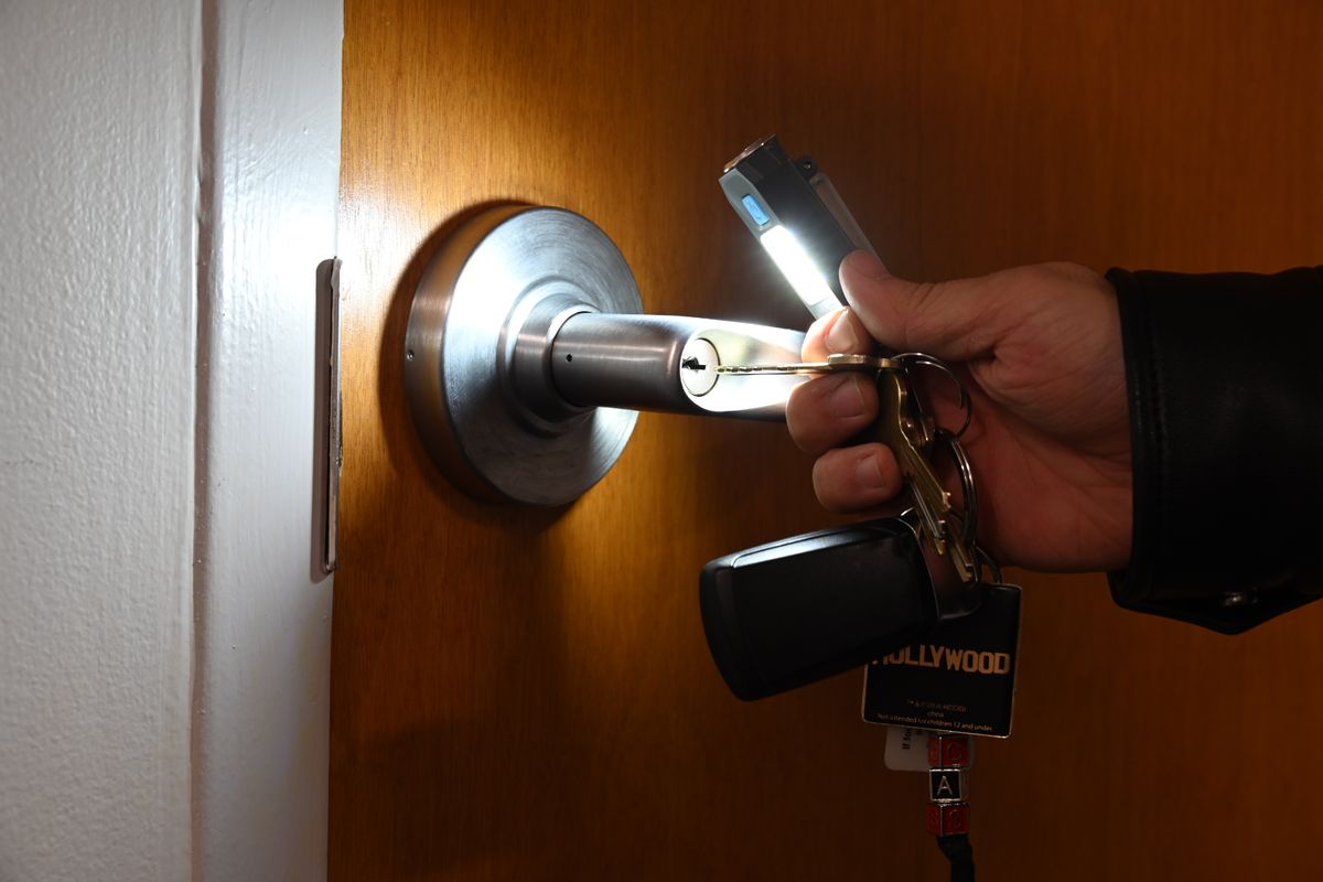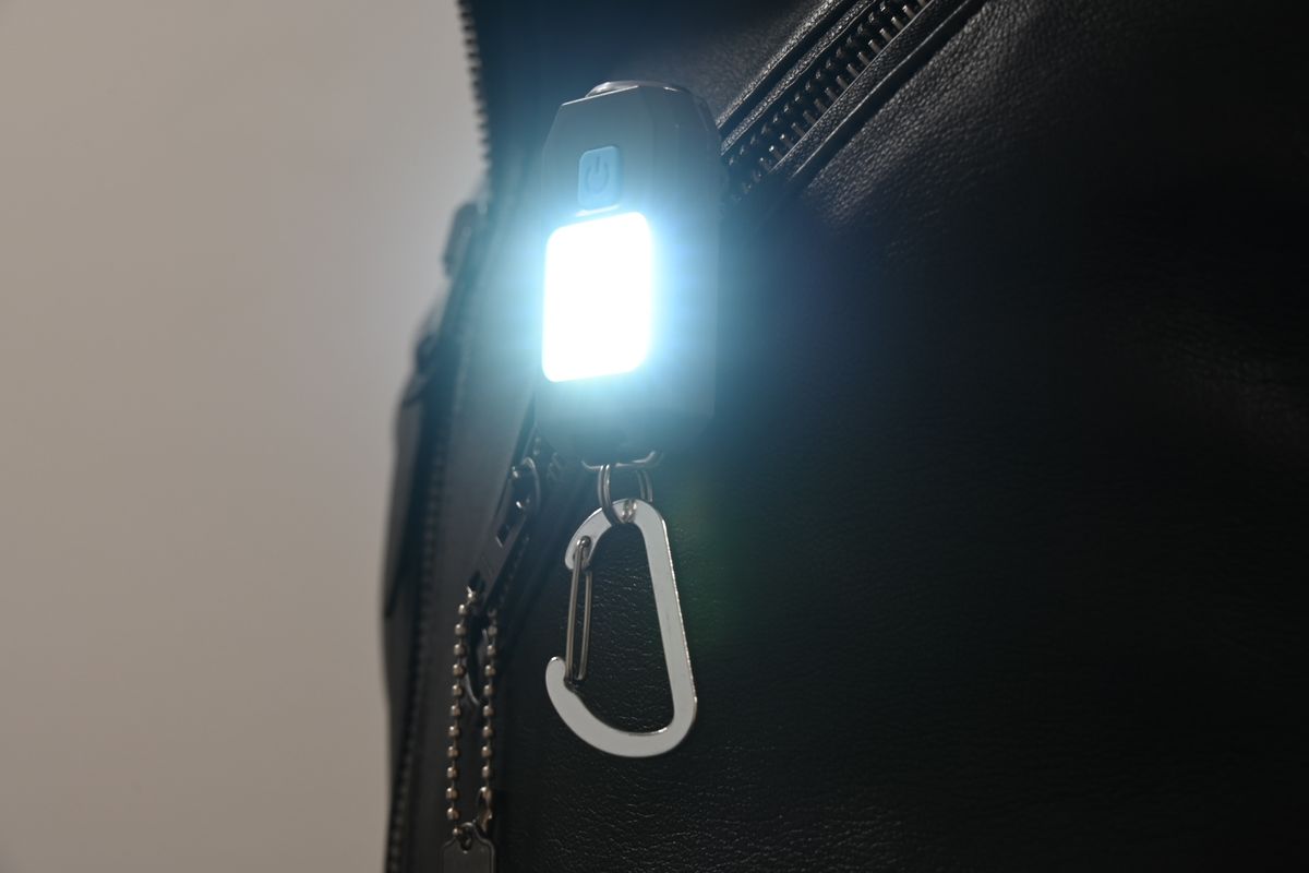 • Compact keychain-style flashlight with a durable aluminum alloy housing.